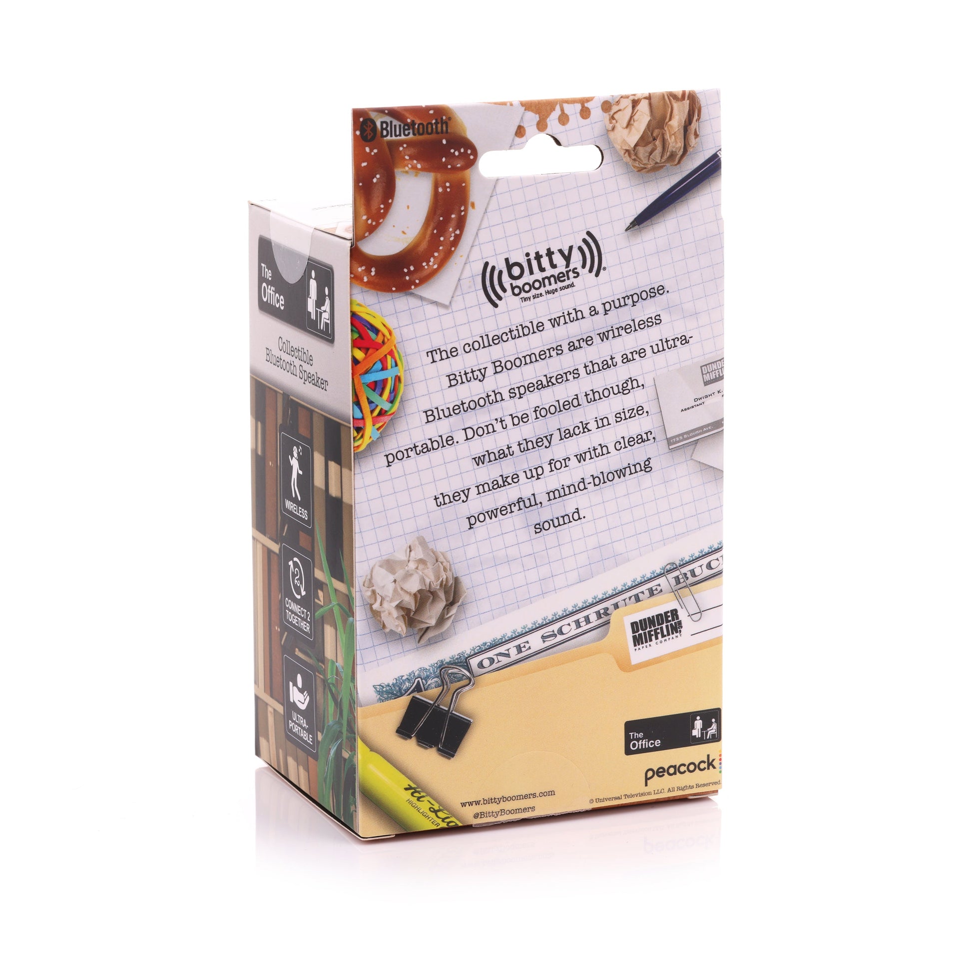 Bitty Boomers are collectibles with a true purpose, not to just sit on a shelf and gather dust. These little things are wireless Bluetooth speakers that are ultra-portable! Don't be fooled though, what they lack in size they make up for with mind-blowing sound. Tiny size. Huge sound.