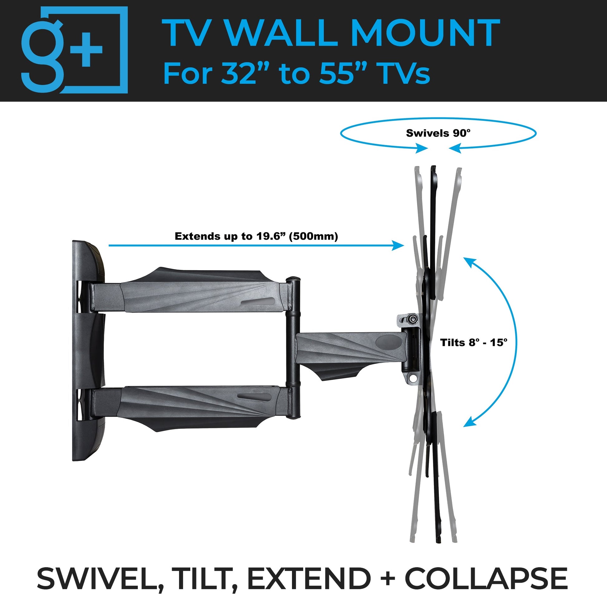 The Gadgets+ Universal TV Mount is the perfect companion to all your HIDEit Mounts! The simple, yet versatile TV mount installs just about anywhere with its slim profile. It's designed with standard VESA hole patterns to fit nearly every 32 inch to 55 inch curved and flat-panel TVs. Need a better viewing angle? The fully articulating arm can extend nearly 20 inches and tilts a total of 15 degrees for the perfect view. You’ve mounted your consoles, now complete your setup and mount your TV with the Gadgets+ Universal TV Mount!