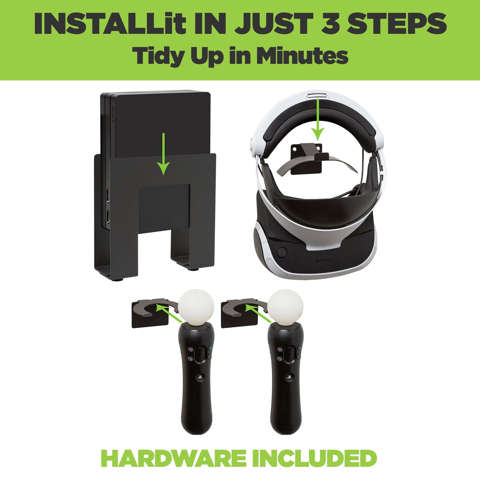 PlayStation 4 VR Wall Mounts for PSVR Headset, Processor Unit + Move Controllers